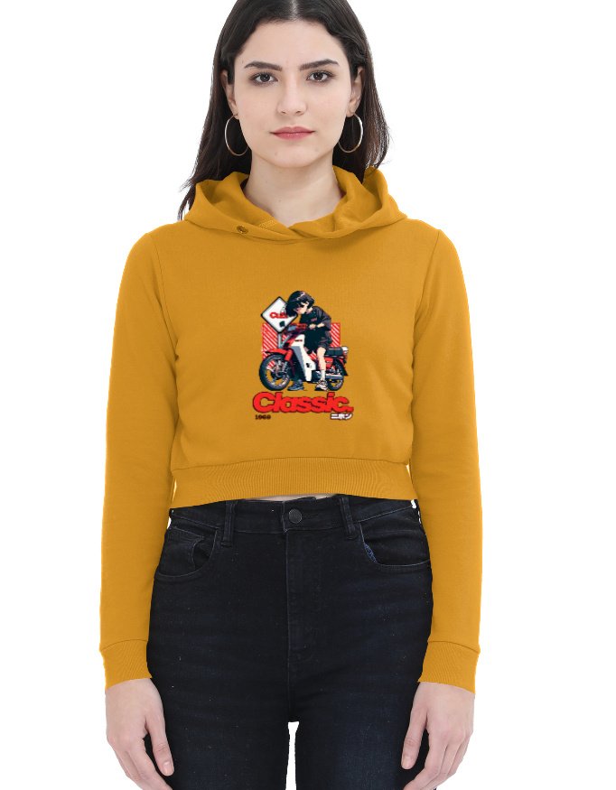 Turn heads with the Classic Rider Female Cropped Hoodie—a perfect blend of comfort, confidence, and trendsetting fashion. Designed for women who love edgy streetwear, this hoodie brings a fresh twist to a wardrobe essential.